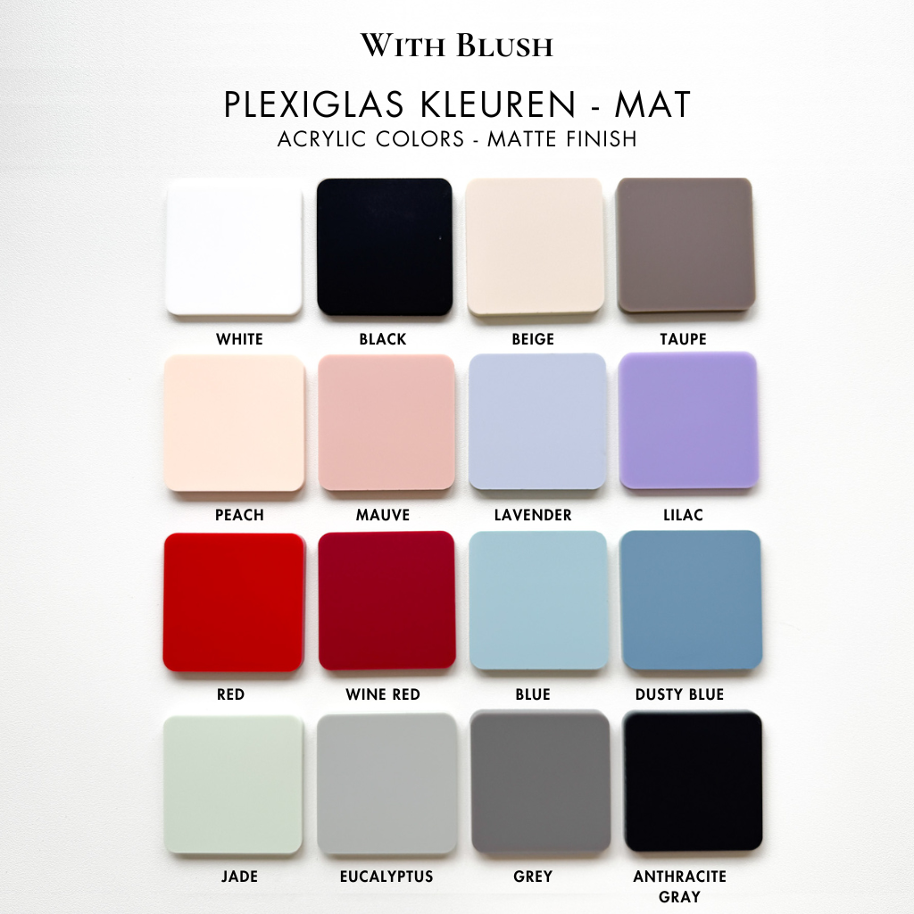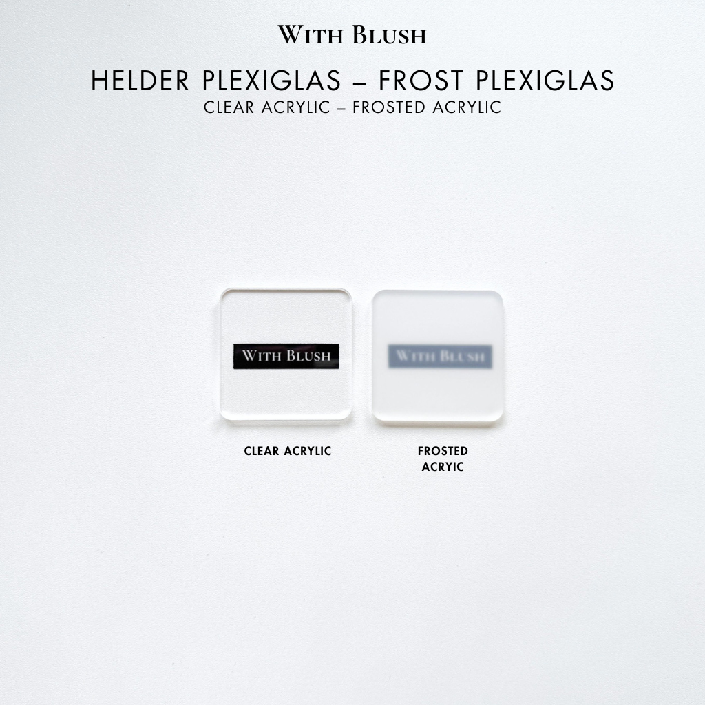 Matte plexiglas heeft een subtielere, zachte uitstraling met een gladde afwerking die geen licht reflecteert. Het zorgt voor een elegante en ingetogen look, ideaal voor producten waar je een meer verfijnde uitstraling wilt creëren. Matte plexiglas vermindert schittering, wat het perfect maakt voor een rustige en professionele uitstraling.