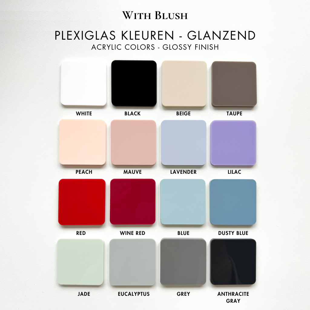 Glossy glanzend plexiglas heeft een glanzend, spiegelend oppervlak dat een luxe uitstraling geeft. Het reflecteert licht op een opvallende manier, waardoor het ideaal is voor decoratieve en gepersonaliseerde producten. Dit type plexiglas is duurzaam, gemakkelijk te reinigen en biedt een strakke, moderne look die de kleuren en details van het ontwerp versterkt.